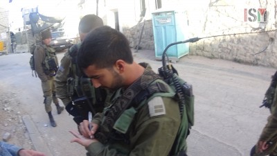 Come ogni mattina, gli osservatori internazionali stavano arrivando al checkpoint 55, che divide Shuhada Street in un piccolo tratto dove i palestinesi sono autorizzati a camminare e l’ex mercato principale palestinese che è ora una strada fantasma svuotata dei palestinesi, a cui è vietato l’accesso. Tre osservatori internazionali sono stati fermati dai soldati mentre camminavano vicino a un altro checkpoint. I soldati hanno ordinato loro di passare attraverso il checkpoint, anche se era nella direzione opposta a dove stavano andando. Le forze israeliane in un primo momento si rifiutarono di dare una ragione per questo ordine e poi ha spiegato che è ‘una regola’, e ‘dicono cosi’.