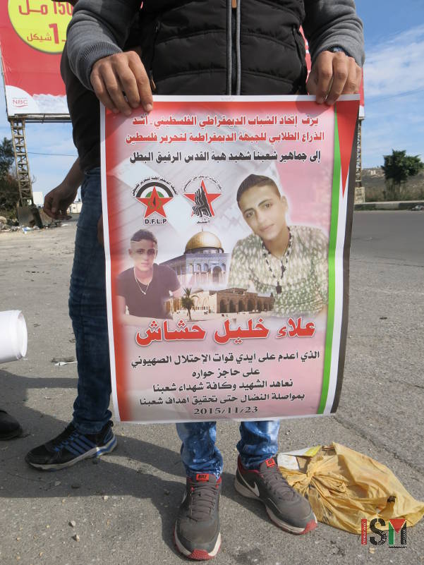 Manifestanti da Nablus e dai villaggi circostanti si sono riuniti in una manifestazione sabato, 28 novembre, chiedendo la restituzione del corpo di un giovane martire. Alaa Khalil Hashash, 16 anni, è stato ucciso dalle forze israeliane dopo il presunto tentativo di pugnalare un soldato israeliano al checkpoint Huwwara vicino alla città di Nablus nella Cisgiordania settentrionale, lunedì 23 novembre.