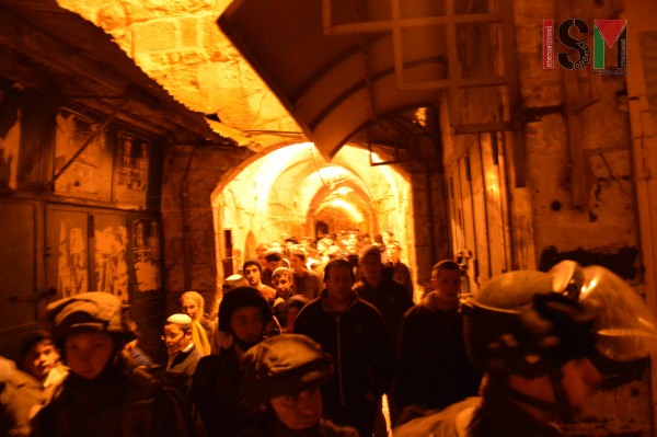 Intorno 21 e 30, coloni israeliani provenienti dagli insediamenti illegali in tutto al-Khalil si sono riuniti a Bab al-Baladiyya, da dove sono entrati nel souq palestinese, il mercato, circondato dalle forze israeliane pesantemente armati. Il gruppo di più di 50 coloni ha iniziato un ‘tour’ del mercato palestinese, con le forze israeliane di ‘guardia’ per loro in tutto il mercato palestinese. Residenti palestinesi non potevano passare ederano costretti ad aspettare a distanza, con i soldati che più volte puntavano i laser dei loro fucili contro di loro per indicare che devono fermarsi. Un rientro a casa a piedi di notte però, che per alcuni palestinesi ha preso quasi un’ora, invece dei soliti 10 minuti.