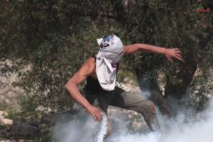 L’8 febbraio ha segnato 30 anni dalla prima marcia di Kfar Qaddum durante l’Intifada, quando l’abitante Abed al Baset Jumal è stato assassinato da coloni mascherati. La gente del posto si è riunita oggi in onore di Baset Jumal e in segno di protesta contro un blocco stradale che impedisce l’accesso al villaggio; questa strada è stata chiusa ai locali dal 2003. I soldati hanno anche sparato diversi proiettili di acciaio rivestiti di gomma, gas lacrimogeni e bombe sonore.