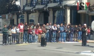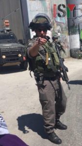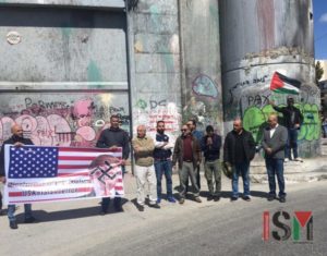 Stamattina, i palestinesi si sono radunati davanti al muro dell’apartheid presso l’hotel Intercontinental di Betlemme per la preghiera del venerdì, che si è tenuta per strada. Dopo la preghiera, manifestanti palestinesi e internazionali hanno marciato pacificamente verso il cancello del muro dell’apartheid cantando e iniziando a sbattere le loro schiene contro il cancello di metallo del muro dell’apartheid. La border police ha rapidamente attraversato il cancello puntando le armi in faccia ai dimostranti e lanciando granate stordenti, accompagnati da un mezzo corazzato che ha sparato numerosi proiettili di gas lacrimogeno.
