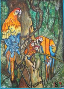 ‘Pappagalli in Palestina’, olio su carta pastello