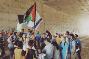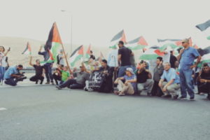 La presenza non violenta dei palestinesi e degli attivisti internazionali di solidarietà ha fatto pressione su “Im Tirtzu” per ritirarsi sull’autostrada. Forze israeliane, la polizia, i militari e la polizia di frontiera, hanno incontrato i gruppi lungo l’autostrada e si sono preparati indossando la loro attrezzatura antisommossa. Mentre quelli di “I’m Tirtzu” aspettavano il loro autobus per ritirarsi, la polizia ha chiesto che i palestinesi e gli internazionali tornassero a Khan Al-Ahmar, spingendo anche fisicamente diversi individui. La polizia ha anche afferrato le bandiere palestinesi in uno spettacolo di inutile aggressione mentre le persone si ritiravano.
