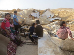 A pochi metri di fronte alla casa appena distrutta, si possono vedere almeno altre tre pile di macerie che erano unità abitative, tutte appartenenti a Hassan. Questa è stata la settima volta che una sua casa è stata demolita. “Continuano a distruggerli. A volte con avvertimento, a volte no. È una politica casuale. Non c’è modo di sapere cosa faranno. “Hassan ha 8 figli.