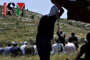 Un uomo locale ha spiegato la protesta: “Per circa nove mesi qui in questa zona, abbiamo protestato, rifiutando questo piano da parte israeliana, chiedendo loro di spostare questo avamposto sulla montagna e di restituire la terra al proprietario. Circa un mese fa, uno dei proprietari della terra ha cercato di costruire una piccola stanza qui – loro (i militari) vennero e lo demolirono. […] Ma danno permessi ai coloni – i coloni non sulla loro terra, questa è terra palestinese – hanno permesso loro di costruire fattorie e avamposti, e come ho detto, questo è un centro, lo avviano qui per un grande insediamento nell’area, per costruire una grande strada tra i grandi insediamenti nella zona “.