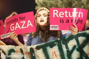 Dal giorno in cui l’Eurovision è stata inaugurata il 15 maggio, eravamo lì bendati e ammanettati all’Eurovision di Tel Aviv per ricordare ai partecipanti le vite rubate dei prigionieri politici palestinesi nelle prigioni israeliane. Abbiamo proiettato immagini dell’occupazione presa da attivisti, durante una serata dell’Eurovision e dei morti in un altro in solidarietà con la Grande Marcia di Ritorno palestinese. E i manifesti appesi sul luogo per portare i volti dei bambini uccisi a Gaza a queste feste si sono tenuti sulla spiaggia, la terra del villaggio palestinese di Manshiya, etnicamente purificato, in solidarietà con la grande marcia del ritorno. Alla semifinale, gli attivisti ISM hanno srotolato uno striscione all’interno del locale che recitava “Osiamo sognare una fine dell’apartheid”