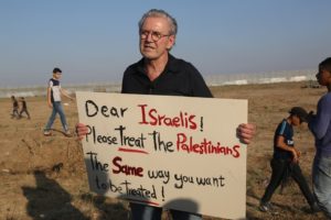 Gaza (QNN) – I cecchini israeliani sulle barriere di separazione tra Gaza e la terra occupata, venerdì hanno sparato un proiettile di gomma contro l’autore e giornalista tedesco Jürgen Todenhöfer mentre partecipava alle pacifiche proteste del Grande Ritorno da marzo scorso.