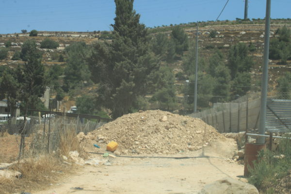Una strada di accesso palestinese bloccata.