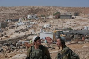 Soldati israeliani sulla scena delle demolizioni  a Mufakara.