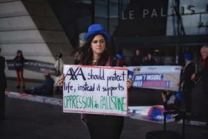 Mettiti dalla parte giusta della storia e assicurati che la tua azienda, AXA, non stia investendo nel danneggiare i nostri diritti di palestinese e non sia complice delle violazioni di Israele del diritto internazionale.