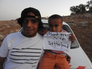 Oltre una dozzina di manifestanti del villaggio beduino di Umm al-Khair, nelle colline a sud di Hebron, sventolavano cartelli con la scritta “vivi con la terra, vivi come i beduini”, nella prima azione di extinction/rebellion in Palestina.