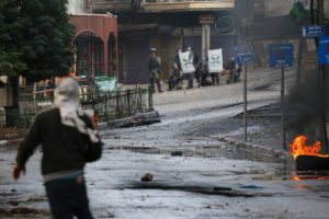 I palestinesi affrontano i soldati dell’occupazione israeliana durante uno sciopero di massa per protestare contro l’espansione degli insediamenti e la confisca delle proprietà palestinesi nella città di Hebron in Cisgiordania, il 12 dicembre. Ahmad Al-Bazz ActiveStills