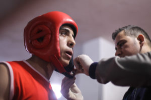 Un atleta gareggia durante il Palestine Boxing Championship a Gaza City il 20 dicembre. Immagini Mahmoud Ajjour APA