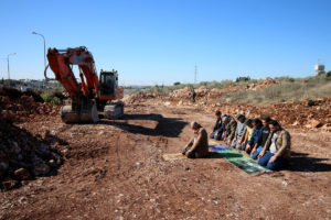 I palestinesi del villaggio di Kafr Laqif protestano contro la costruzione israeliana nelle loro terre il 12 dicembre. Gli agricoltori hanno presentato i documenti di proprietà alle autorità israeliane, ma è stato detto loro che la terra del villaggio è considerata “terra di stato”. Tutti gli insediamenti israeliani in Cisgiordania sono illegali ai sensi del diritto internazionale. Ahmad Al-Bazz ActiveStills