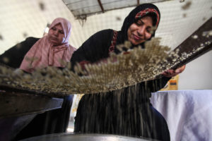 Le donne palestinesi preparano maftoul – bulgur arrotolato a mano e farina di frumento – a Gaza City il 30 dicembre. Immagini Mahmoud Ajjour APA