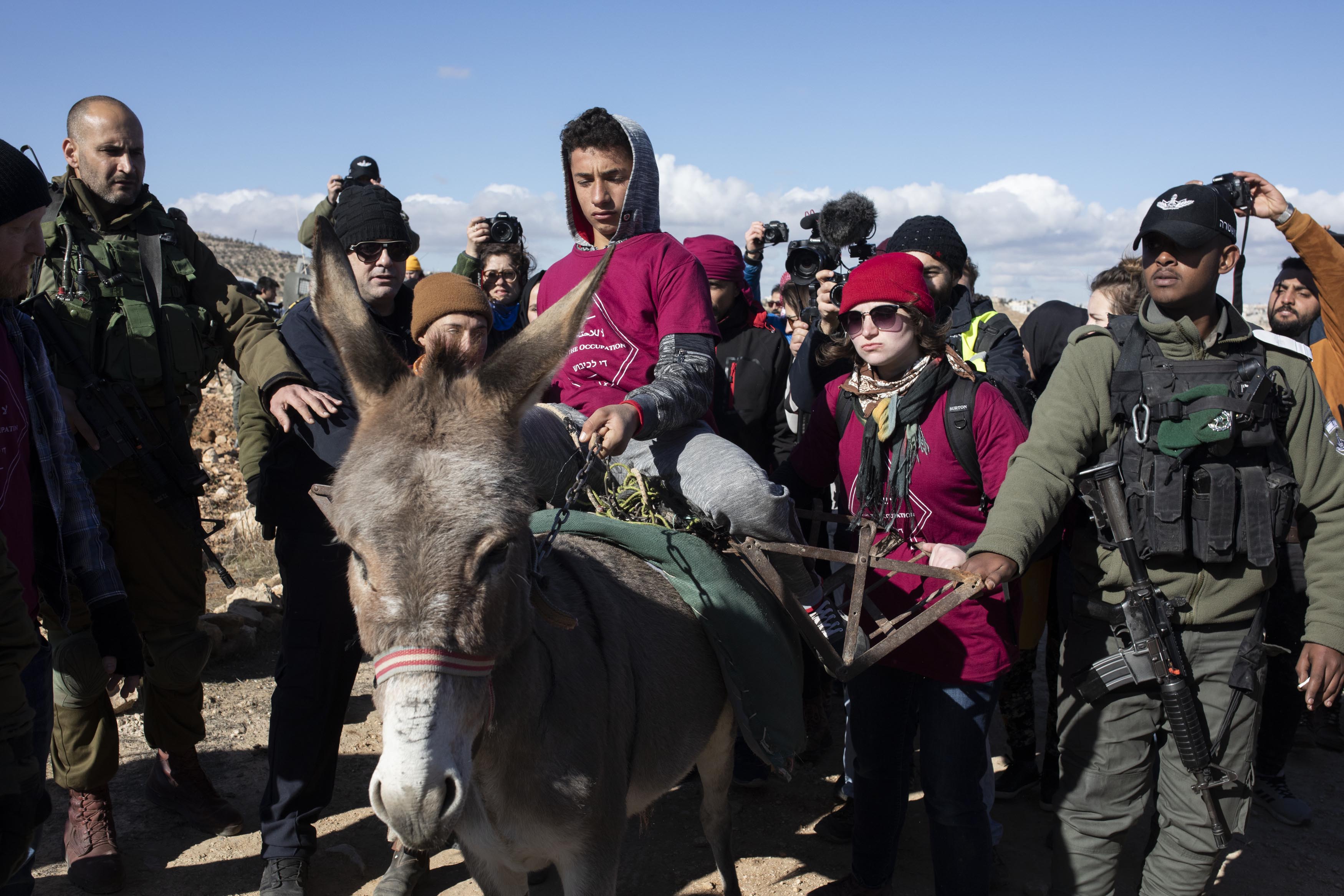 Attivisti palestinesi, israeliani e internazionali prendono parte a un’azione diretta per ripristinare l’accesso alla sorgente di Ein Albeida, South Hebron Hills, 3 gennaio 2020. (Oren Ziv / Activestills.org)