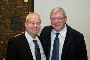 Eliezer Shkedi, a destra, con Israel Ziv, al lancio di “Israeliani contro il razzismo”. Shkedi ha comandato l’aeronautica israeliana durante l’assalto israeliano del 2006 al Libano che ha ucciso 900 civili – Israeliani contro il razzismo
