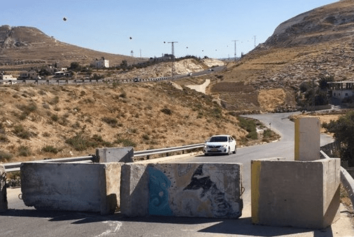 Le forze di occupazione israeliane hanno posto blocchi di cemento per impedire ai palestinesi di viaggiare lungo la strada Betlemme-Nablus nella Cisgiordania occupata. [Maan]