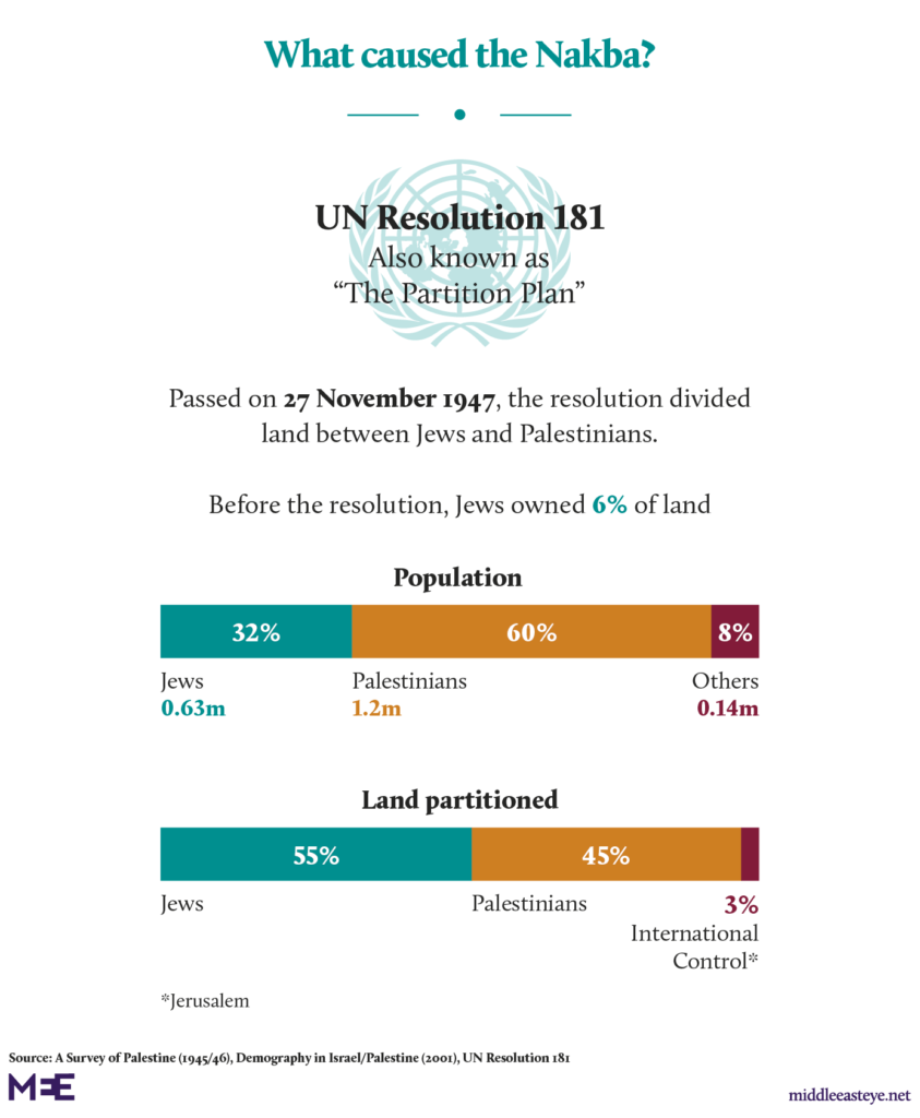 Per i palestinesi, la Nakba è un disastro ricorrente. Almeno 750.000 palestinesi furono sfollati dalle loro case nel 1948. Altri 280.000 a 325.000 fuggirono dalle loro case in territori usurpati da Israele nel 1967.