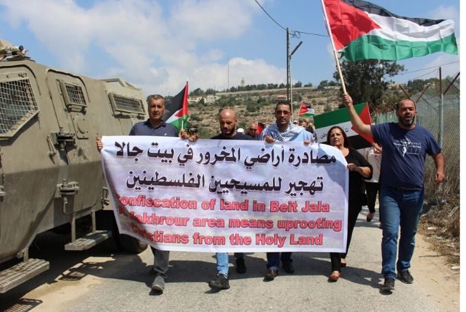 Manifestanti palestinesi protestano contro gli insediamenti ebraici in Cisgiordania. (Foto: tramite MEMO)