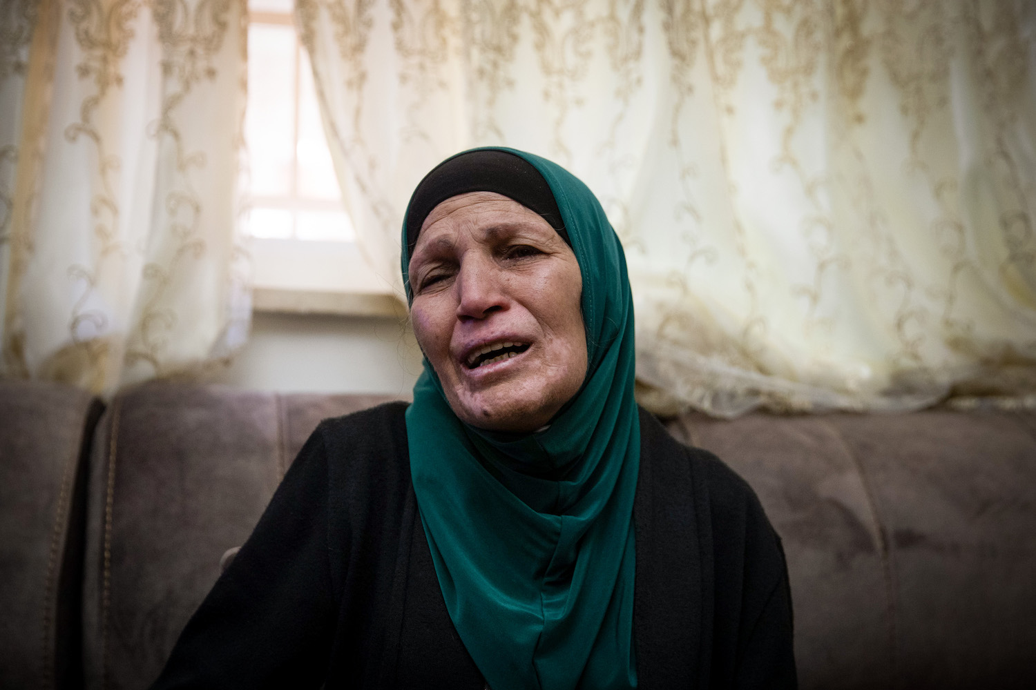 The mother of a Palestinian man who was shot dead by police earlier this morning in the Old City of Jerusalem speaks with the media at her family home in the east Jerusalem Neighborhood of Wadi al-Joz, on May 30, 2020. Photo by Yonatan Sindel/Flash90