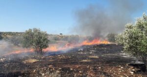 Bombe dell’IOF bruciano  terreni agricoli palestinesi a Qalqilya