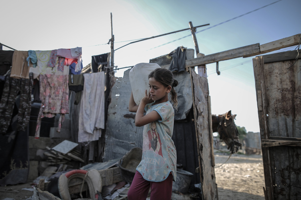 Raghad, 11 anni, porta l’acqua a casa sua, che spesso è priva di fornitura idrica. Sanad Latefa
