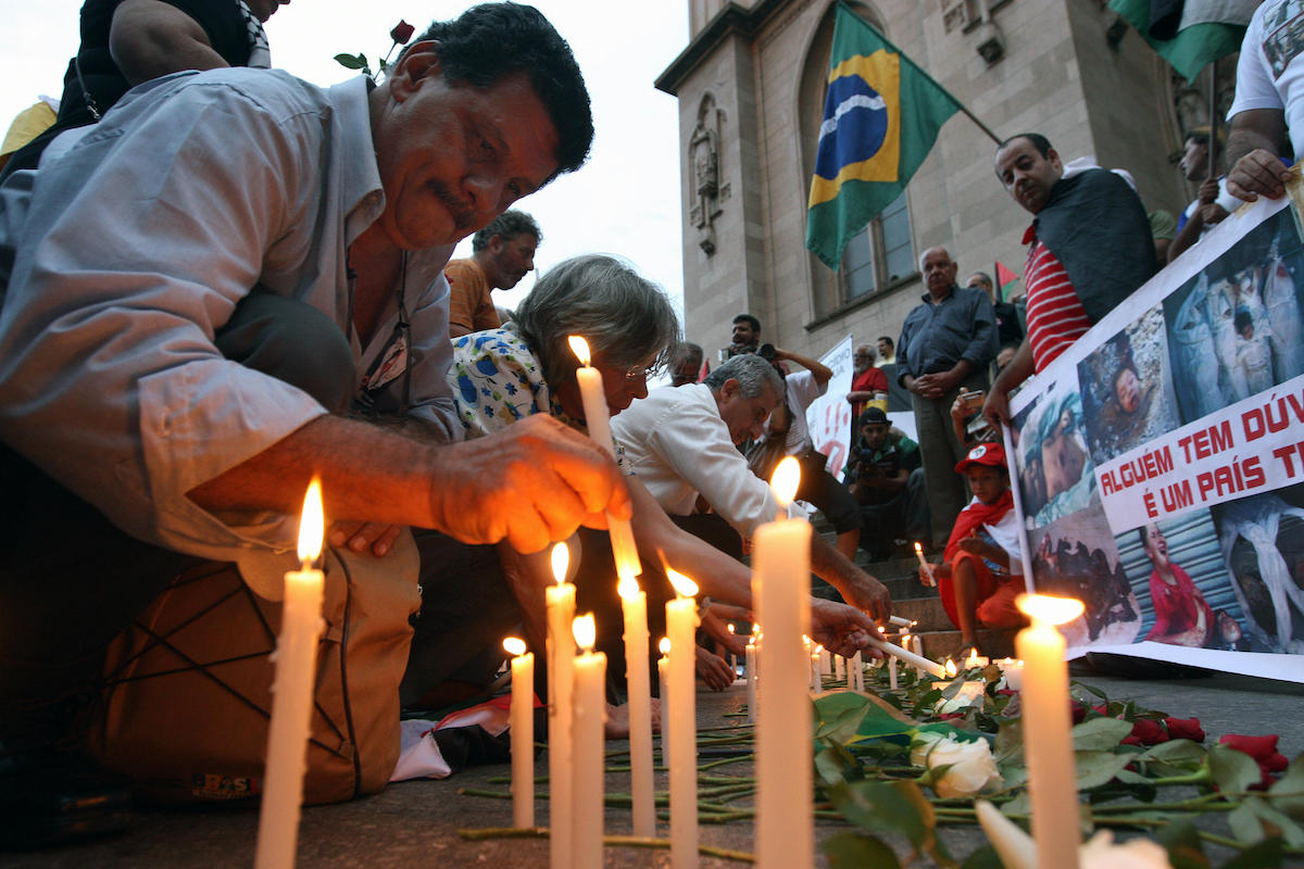 I manifestanti accendono candele a San Paolo il 16 gennaio 2009, durante una protesta contro l’offensiva militare israeliana nella Striscia di Gaza. [NELSON ALMEIDA / AFP tramite Getty Images]