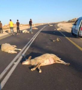 Fuad Al-Amour, il coordinatore del Comitato per la protezione e la fermezza nel sud di al-Khalil, ha dichiarato che un colono ha investito 10 pecore nella tangenziale vicino alla città di Al-Samou, che ha portato alla loro morte. Queste pecore appartengono al cittadino palestinese Ali Awada.