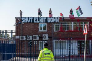 Si dice che un ministro israeliano abbia chiesto al governo britannico di sopprimerli. I manifestanti possono trarre coraggio da come azioni precedenti di questa natura hanno avuto un impatto significativo. Quando Israele ha attaccato il Libano nel 2006, nove attivisti hanno occupato un impianto di software che Raytheon, un gigante statunitense delle armi, aveva aperto nella città nordirlandese di Derry. Raytheon ha deciso di ritirarsi da Derry a seguito di quella protesta.
