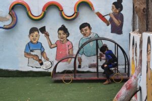 I bambini giocano fuori da un centro comunitario fondato da Zuheir Rajabi. Il centro offre un rifugio sicuro in un quartiere in cui i bambini subiscono molestie da parte di coloni e soldati. Kelly Kunzl