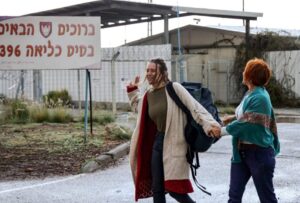 Hallel Rabin (sx), cammina con sua madre Irit Rabin fuori dalla prigione militare “numero sei”, il 20 novembre 2020, dopo essere stata rilasciata dal carcere per aver rifiutato di prestare servizio nell’esercito israeliano [EMMANUEL DUNAND / AFP tramite Getty Images]
