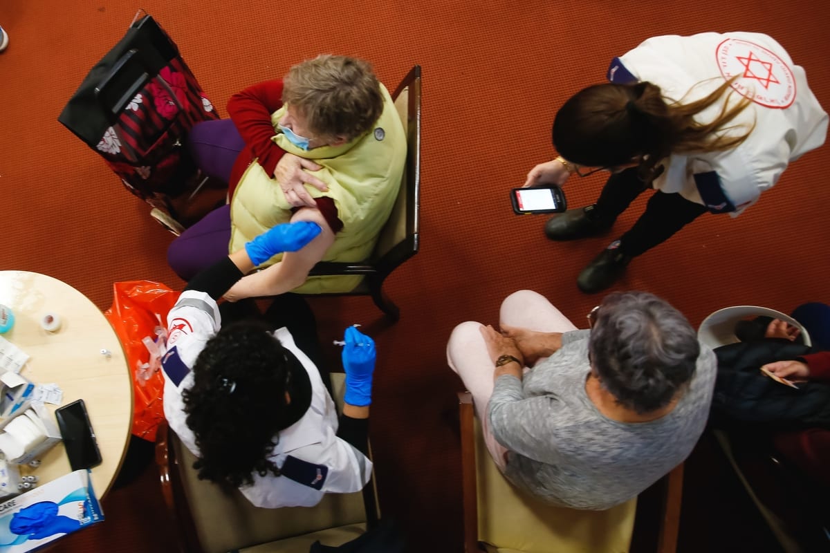 Persone anziane ricevono un vaccino contro il coronavirus Pfizer-BioNTech (COVID-19) presso la casa di cura Mishan Efal, a Tel Aviv, Israele, il 23 dicembre 2020. [Nir Keidar – Agenzia Anadolu]