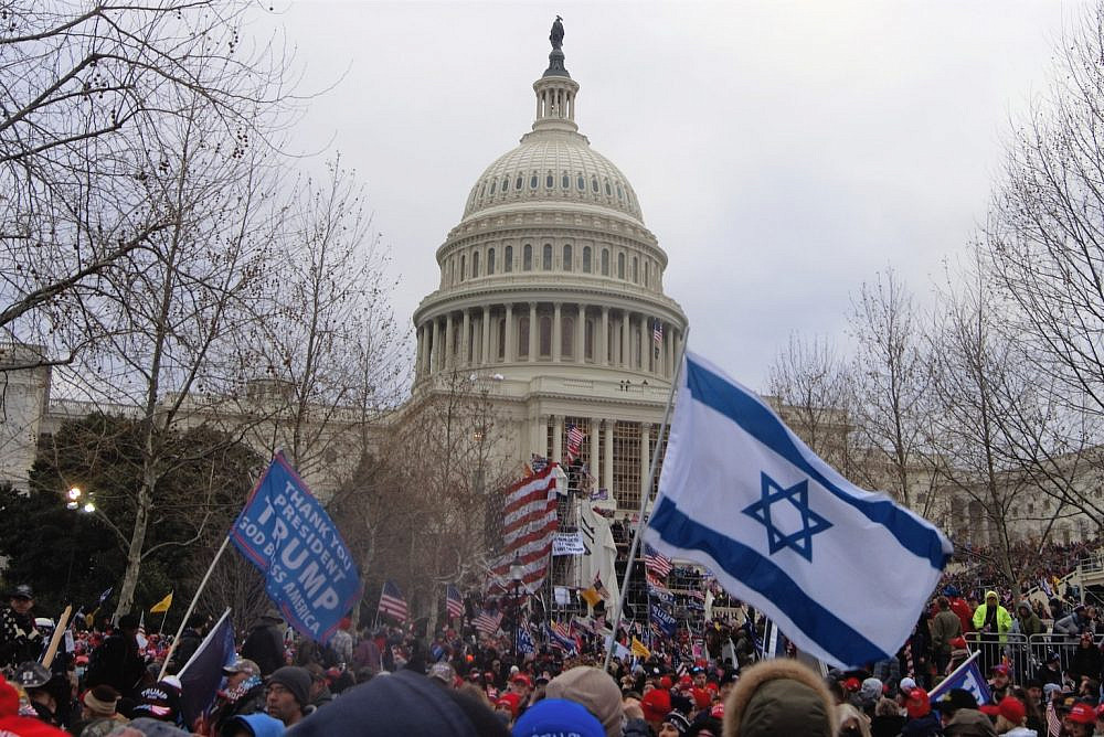 La bandiera israeliana è stata avvistata alla manifestazione per il presidente degli Stati Uniti Donald Trump che si sarebbe conclusa con l’assalto al Campidoglio degli Stati Uniti a Washington, il 6 gennaio 2021 (Tyler Merbler / CC BY 2.0)