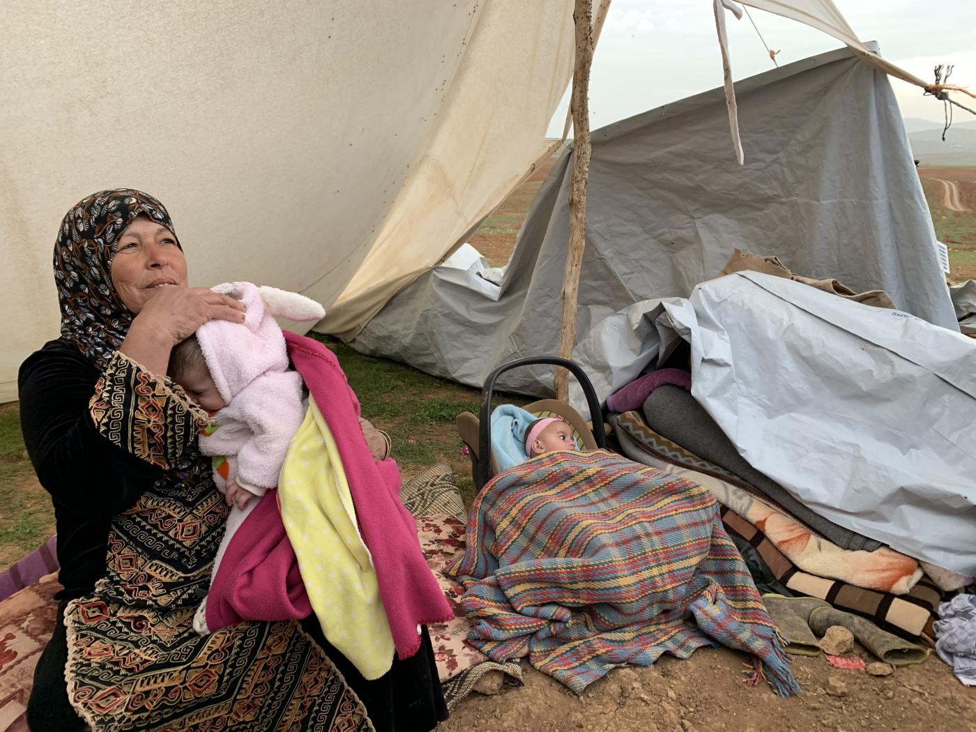 Aisha Abu Awwad seduta in una tenda nei dintorni demoliti di Humsa al-Fawqa (MEE / Shatha Hammad)
