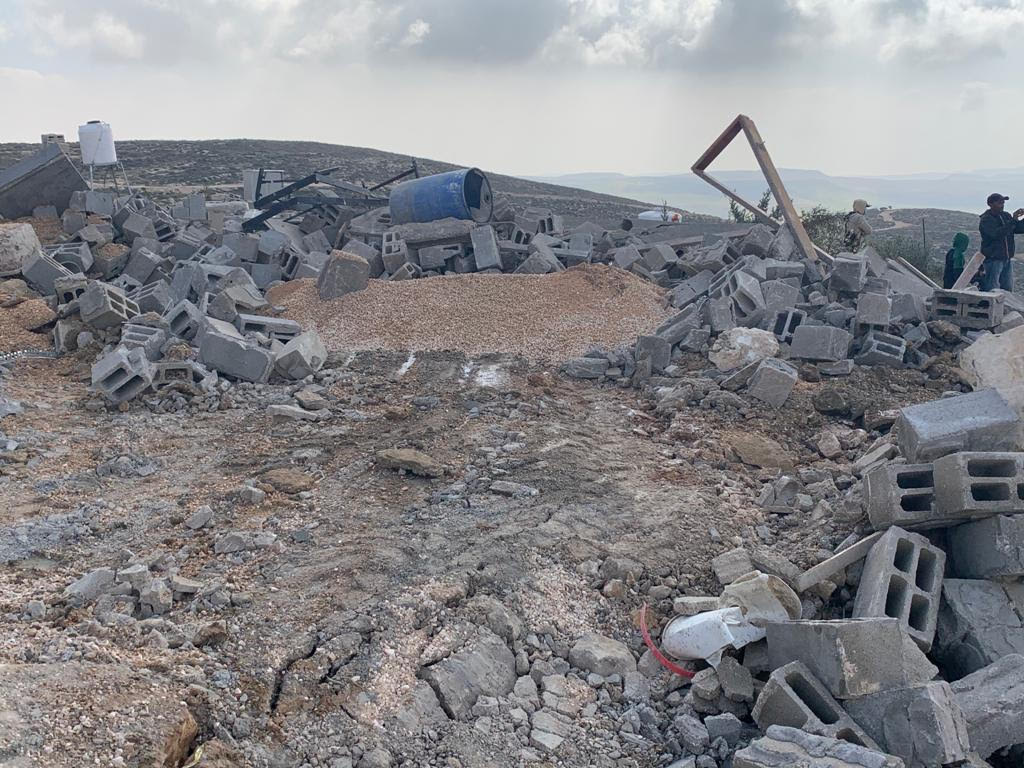 I palestinesi guardano mentre le autorità israeliane demoliscono una tenda a Masafer Yatta, nella Cisgiordania occupata, il 25 novembre 2020 (Wissam Hashlamon / Flash90)