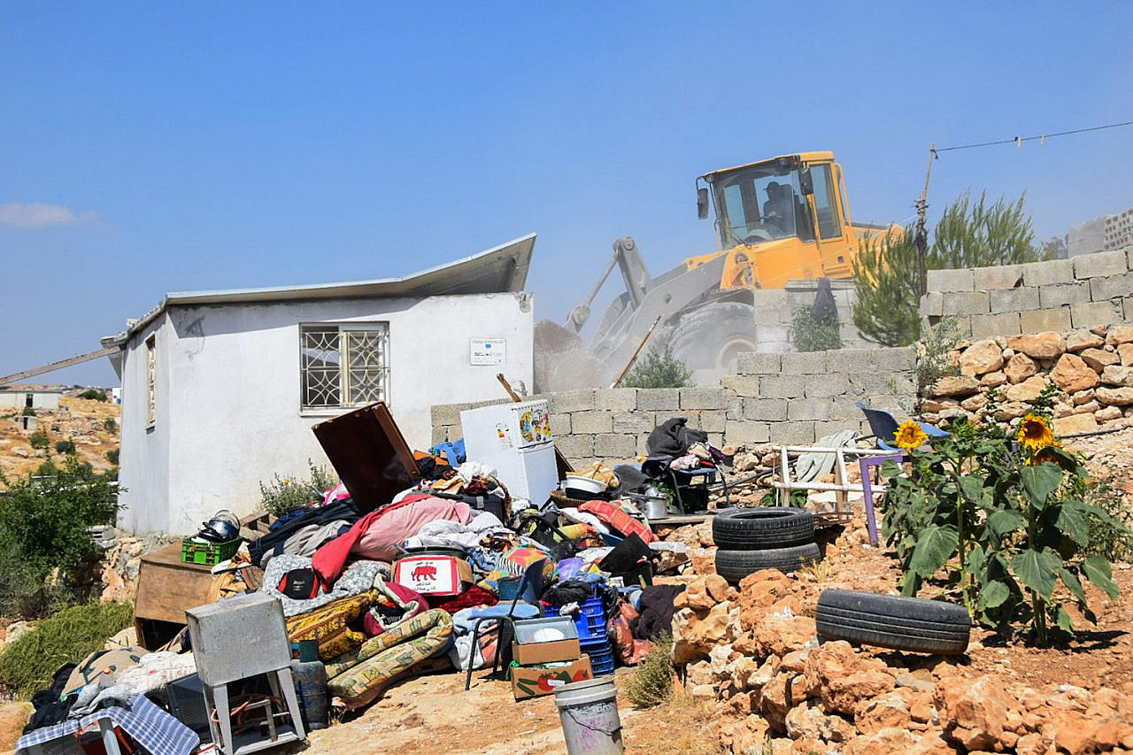 Le autorità israeliane demoliscono una casa nella frazione di Khalat al-Daba, nella Cisgiordania occupata, il 17 giugno 2019 (Wissam Hashlamon / Flash90)