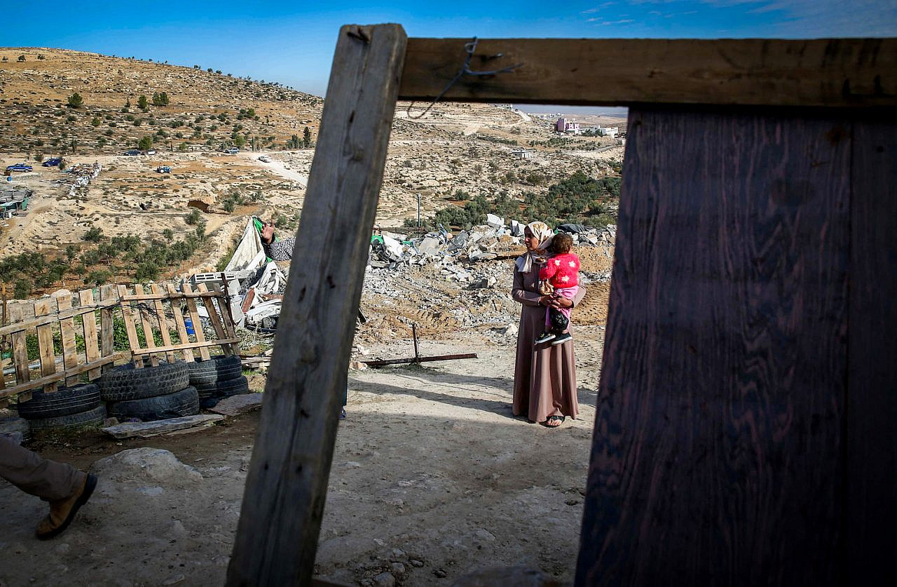 Forze israeliane che demoliscono strutture nella frazione di Khalet al-Daba, nella Cisgiordania occupata, 2 marzo 2021. (Basil al-Adraa)
