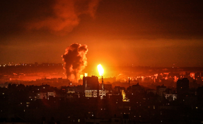 Esplosioni dei bombardamenti israeliani a Gaza City il 16 maggio. Bashar Taleb APA immagini