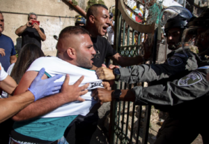 Testimoni oculari hanno detto che le forze israeliane hanno usato bombe sonore, gas lacrimogeni e proiettili d’acciaio rivestiti di gomma contro la folla.