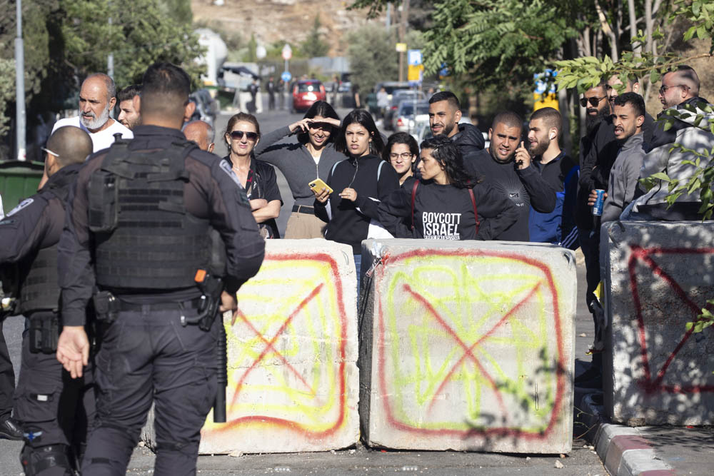 La polizia ha piazzato blocchi stradali in cemento all’ingresso del quartiere di Sheikh Jarrah a Gerusalemme est. Mentre i coloni e gli ebrei di destra possono entrare liberamente, ai palestinesi non residenti è vietato l’ingresso. (Oren Ziv)