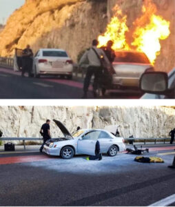 Mona ha affermato che l’incendio è stato il risultato della fuoriuscita di liquido dall’airbag del sedile del conducente e dell’incendio dell’intero lato del conducente. Ha aggiunto che la polizia ha prima dichiarato che l’incidente era davvero un incidente, ma quando è arrivato un ufficiale della Shabak (agenzia di sicurezza interna israeliana), è stato etichettato come attacco terroristico.