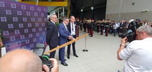 Tra un’ondata di applausi, il ministro sorridente e occhialuto ha posato per le foto, con le forbici in mano, prima di tagliare il nastro d’oro cerimoniale.