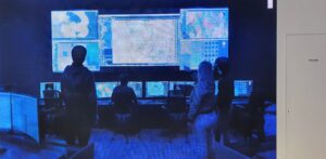 Impostati su una musica seria, i grandi schermi mostravano video in loop di esplosioni, jet in decollo da portaerei, barche scure che attraversavano l’acqua e persone che guardavano mappe complicate nelle sale di comando blu e nere.