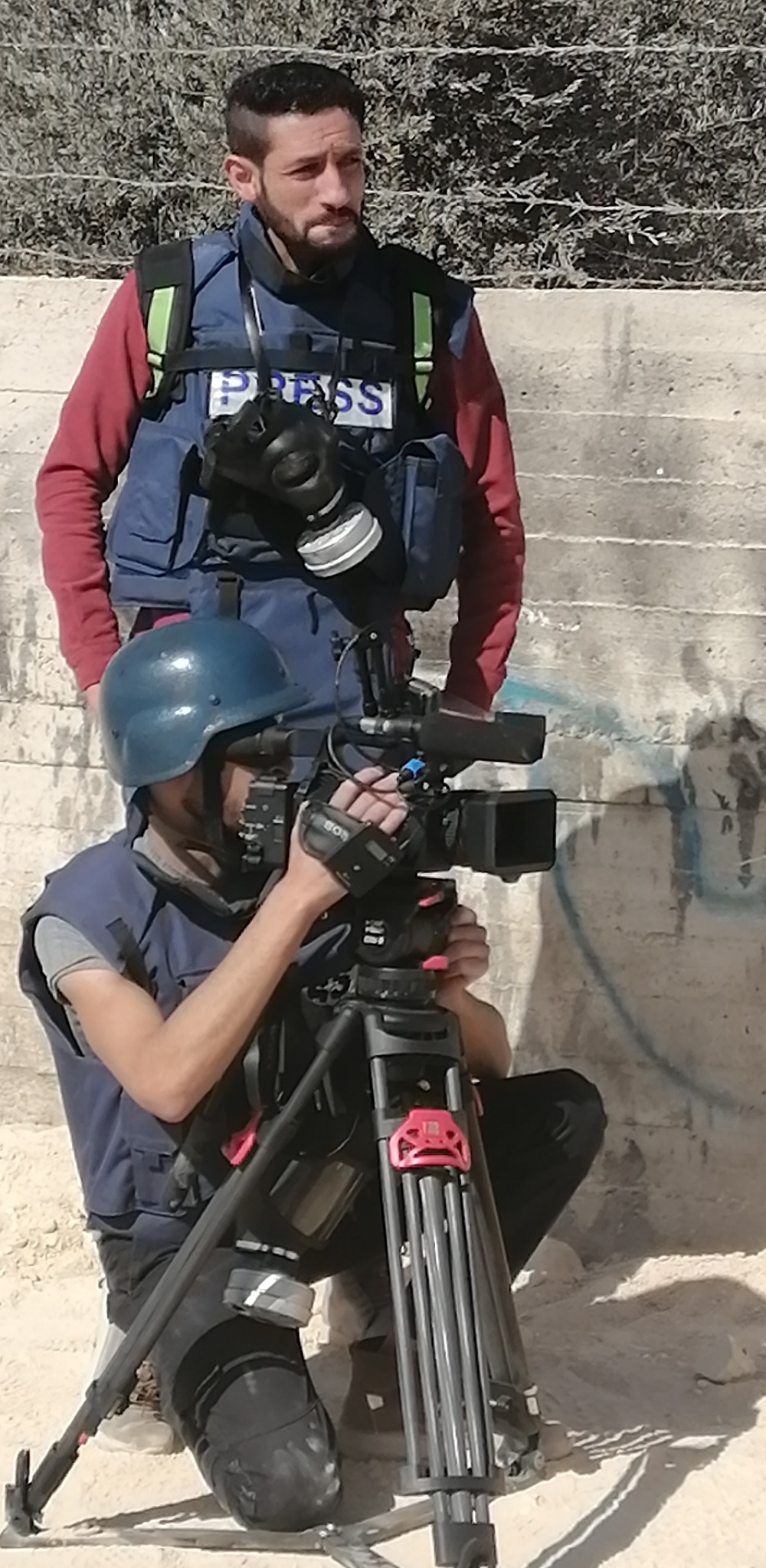 Torniamo a Beita: Arriviamo io e Diana verso le 10.30, lei “armata” di macchina fotografica professionale, giubbotto antiproiettile e maschera antigas (equipaggiamento normale per i reporter ormai target ambìto dei soldati) e siamo accolte con il solito calore da alcuni abitanti; le uniche donne saremo noi e le attiviste israeliane che arrivano da Gerusalemme e Tel Aviv: da quando i confini Israeliani sono stati blindati e quindi nessun volontario internazionale ha potuto entrare, si è intensificata la presenza dei cittadini israeliani contrari all’occupazione, perché gli abitanti di Beita non si sentano soli nella loro resistenza pacifica.