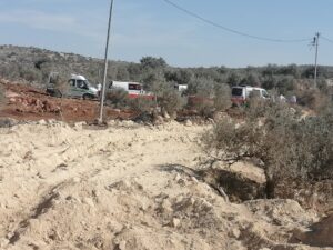 Cito il caso dell’anziano contadino di Surif, ferito da una grossa pietra lanciata da giovani coloni che hanno invaso il suo uliveto armati di bastoni scagliandosi contro i lavoratori e gli attivisti, quello del giovane di Yatta, attaccato e picchiato sempre dai coloni. Nella zona di Yatta vi sono molti villaggi beduini che, oltre a non ricevere né acqua né luce ed avere continui ordini di demolizione, furti di auto e mezzi di lavoro, ogni giorno subiscono incursioni militari e di coloni.