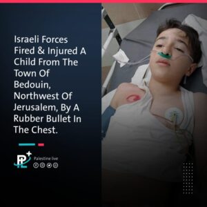 Infine il caso del bambino di Bedouin, presso Gerusalemme, al quale un soldato ha sparato al petto un proiettile di gomma… Attenzione, il proiettile di gomma – se sparato da lontano in una parte non vitale del corpo (come successe a me dietro la coscia sinistra) provoca ematoma, un po’ di dolore e basta, ma se sparato da vicino, in volto o in una parte vitale, può essere letale o causare danni gravi.