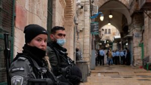 Guardie di frontiera israeliane sulla scena di una sparatoria nella città vecchia di Gerusalemme il 21 novembre 2021 (AFP)