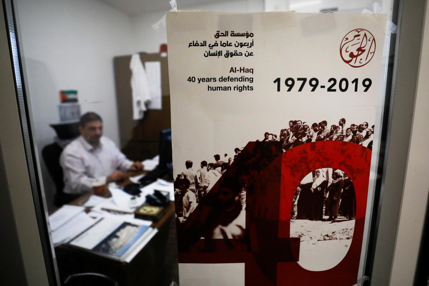 Un membro dell’organizzazione palestinese per i diritti umani Al-Haq nel loro ufficio a Ramallah, nella Cisgiordania occupata da Israele, 8 novembre (Reuters)