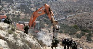 I coloni ebrei dell’avamposto illegale di Ahiya giovedì mattina hanno iniziato a demolire con i bulldozer aree di terra nel sud di Nablus, vicino alla città di Jalud, nel sud di Nablus.